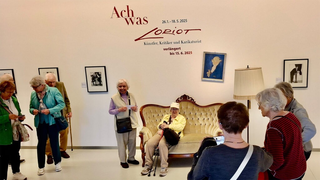 Die Seniorinnen und Senioren der Gemeinde Herz Jesu begegneten dem Karikaturisten, Denker und Bastler Vico von Bülow, alias Loriot, in der Galerie Oberhausen. Natürlich musste das Sofa genutzt werden, und das Bild hing schief, und ganz viele Erinnerungen wurden wach. Die Mitarbeiter des Hauses vermittelten neben dem feinsinnigen Humor auch die dahinterliegende Philosophie. So gab es eine Menge Wissen und Freude und anschließend Kaffee und Kuchen.