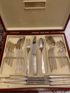Essbesteck für sechs Personen, 925er Silber, im originalen Kasten, Preis 8.000,00 €